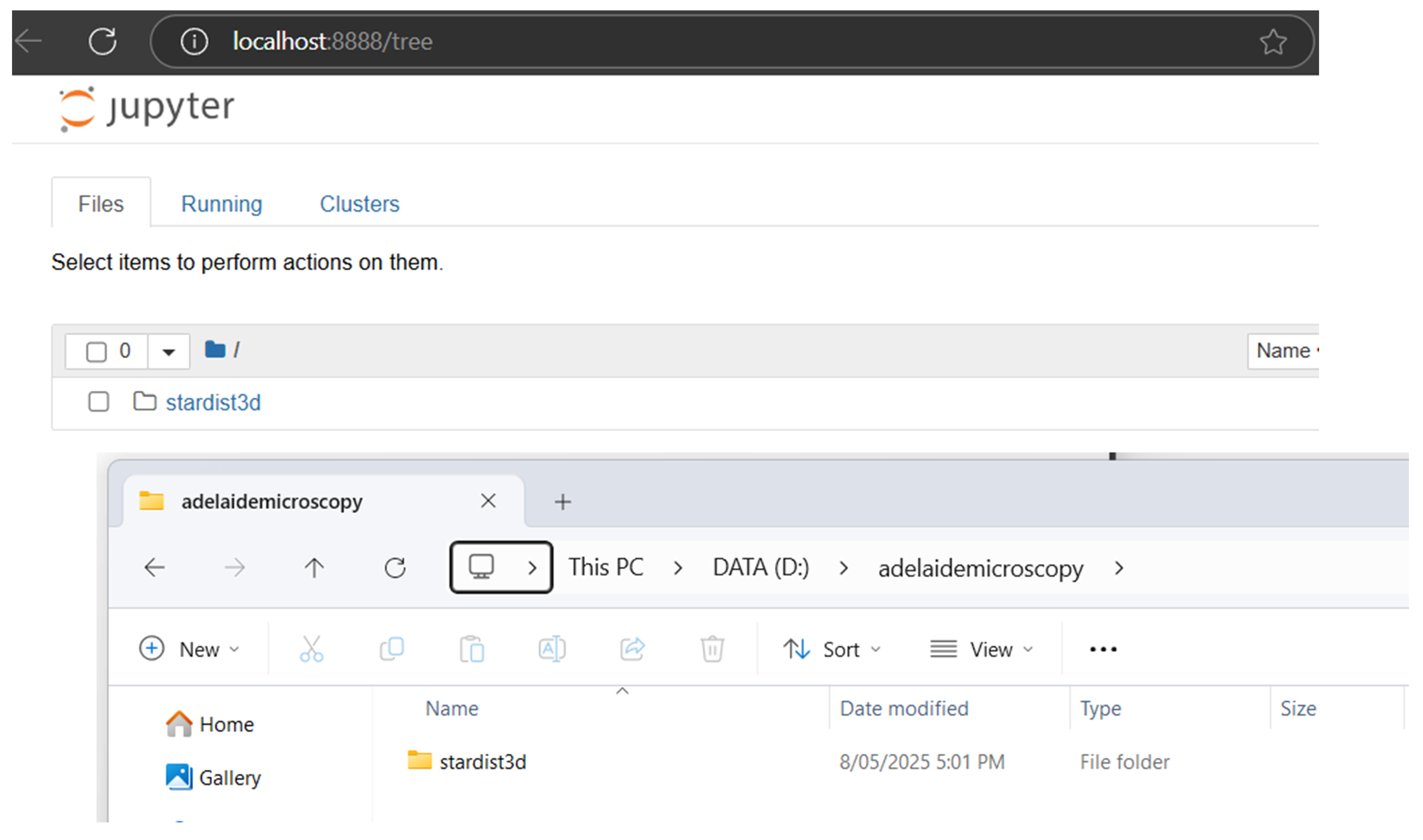 In the example below, we have saved the StarDist3D example files to the D:\adelaidemicroscopy\stardist3d\